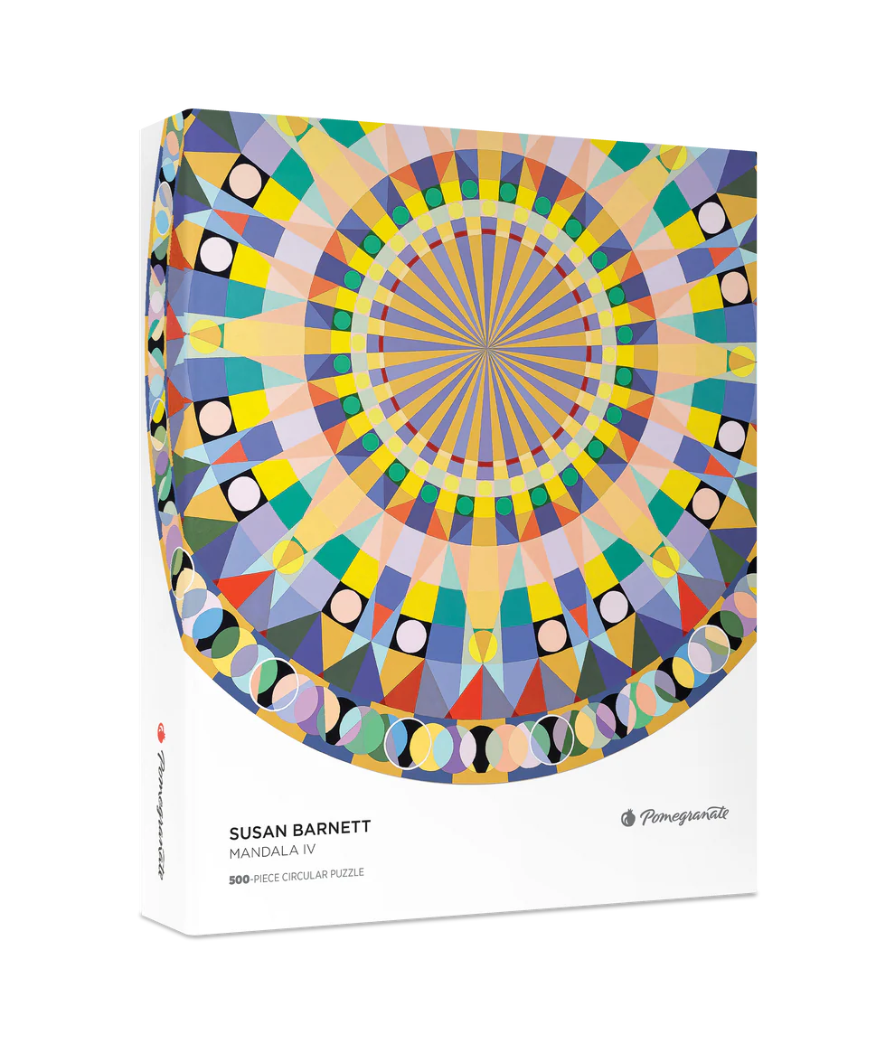 Susan Barnett’s works are created at the intersection of systemic pattern, culture, and art. Her Mandala IV painting might at first appear static, based on an underlying geometric pattern, but its overlaid shapes and color juxtaposition reveal an immersive space where new patterns emerge and the boundary between viewer and painting dissolves. “I am interested in the patterns that exist beneath the surface of our lives. These patterns act as an unconscious director,” she says, “emphasizing one aspect and hiding another.” Contemplate life’s complexities and meditate on Barnett’s mandala as you assemble this 500-piece circular puzzle.